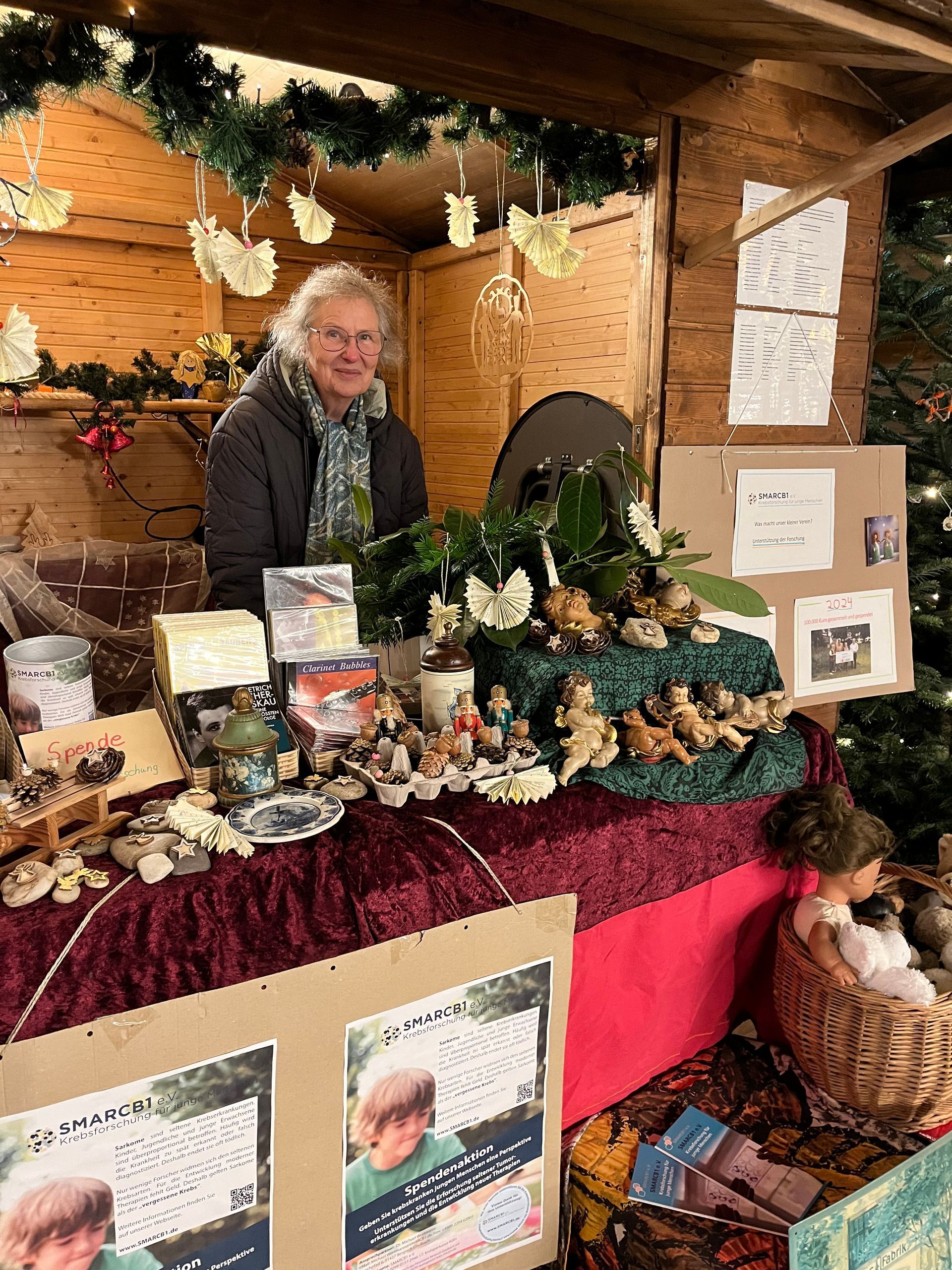 Überall im Land sind wieder Weihnachtsmärkte präsent oder öffen noch die Pforten. Ob klein oder groß, beschaulich oder eher rummelig: sie sind beliebte Anziehungspunkte für Erwachsene wie Kinder. Auch verschiedentliche Anschläge oder aufgedeckte Anschlagsversuche haben daran nichts zu ändern vermocht. Weihnachtsmärkte entführen aus dem Alltag in eine andere, heil erscheinende Welt. „Weihnachtsmärkte sind aber auch Orte der Kommunikation. Besucher sind oft eher geneigt, sozialen, mitmenschlichen Fragen ihr Ohr zu leihen“, sagt Dr. Michael Wortmann, Vorsitzender von SMARCB1 e.V.. Er spricht aus Erfahrung. Schon seit einigen Jahren präsentiert sich der Verein an mehreren Tagen, abwechselnd mit anderen gemeinnützigen Orgaisationen, im Sozialstand auf dem Refrather Weihnachtsmarkt. „Wenn wir den Besuchern die Arbeit von SMARCB1 e.V. erläutern, ihnen erklären, dass sich hinter dem abstrakt klingenden Vereinsnamen Forschungsförderung für an Sarkomen erkrankte junge Menschen verbirgt, ist das Interesse rasch geweckt“. Nicht selten kommen auch Betroffene an den Stand, die selbst an einer Krebserkrankung leiden oder eine erkrankte Person in ihrem Umfeld haben. Dann ist der Austausch oft besonders intensiv. „Die Menschen suchen und brauchen das Gespräch. Die Auseinandersetzung mit Krankheit benötigt direkte Kommunikation. Das spüren wir immer wieder“, sagt der Vorsitzende. Selbstverständlich bringt der Verein auch Informationstafeln mit und bietet Flyer an. Und natürlich können die Gäste gegen eine Spende kleine Präsente mitnehmen, die sie an ihren Besuch erinnern. „Entscheidend aber ist, dass mit der Präsenz auf dem Weihnachtsmarkt – wie auch bei anderen öffentlichen Veranstaltungen – ein kleiner Beitrag geleistet wird, das Problembewußtsein für seltene Krebserkrankungen zu steigern“, resümiert Dr. Michael Wortmann.